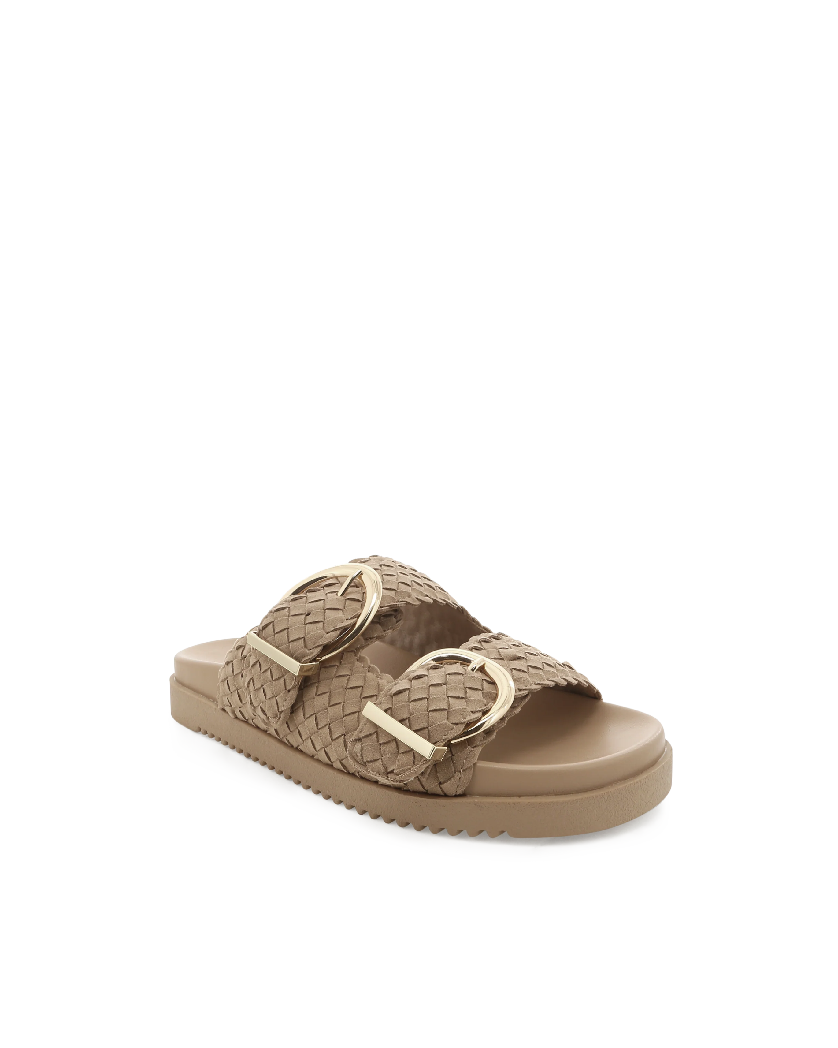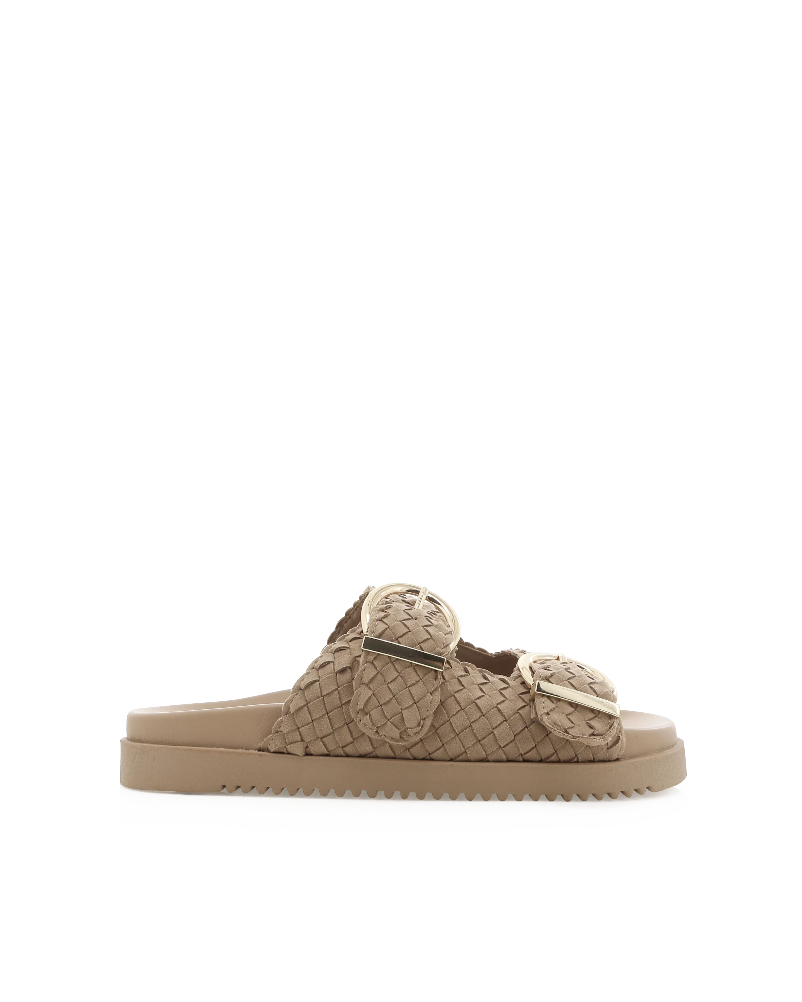 This easy-wear style features a neutral suede finish for effortless warm-weather dressing.