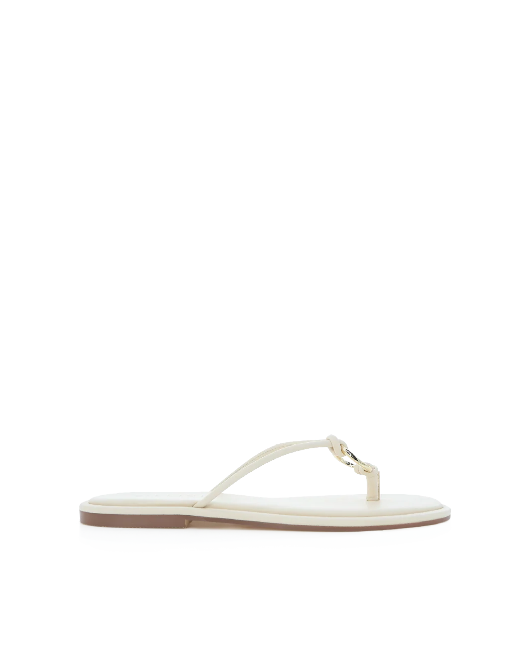 Add a glam finishing touch to your summer wardrobe with this delicate padded thong, featuring luxe gold hardware detailing.